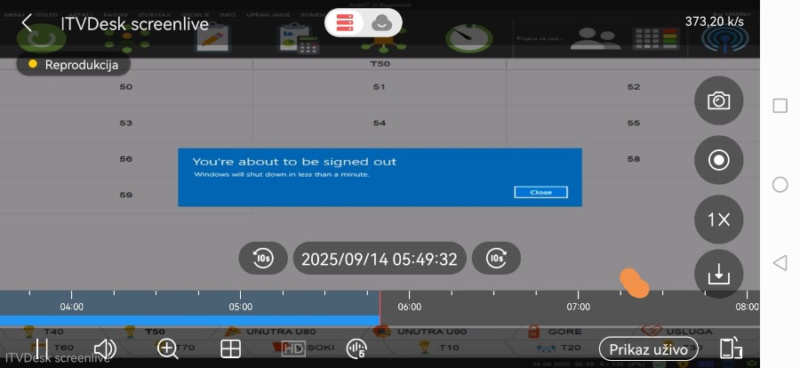 ➡️ The message "You're about to be signed out. Windows will shut down in less than a minute." comes directly from Windows.
