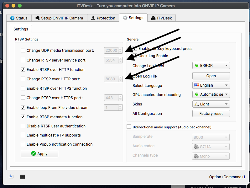 • RTSP Server Port: TCP 5554 - Necessary for video streaming via RTSP.